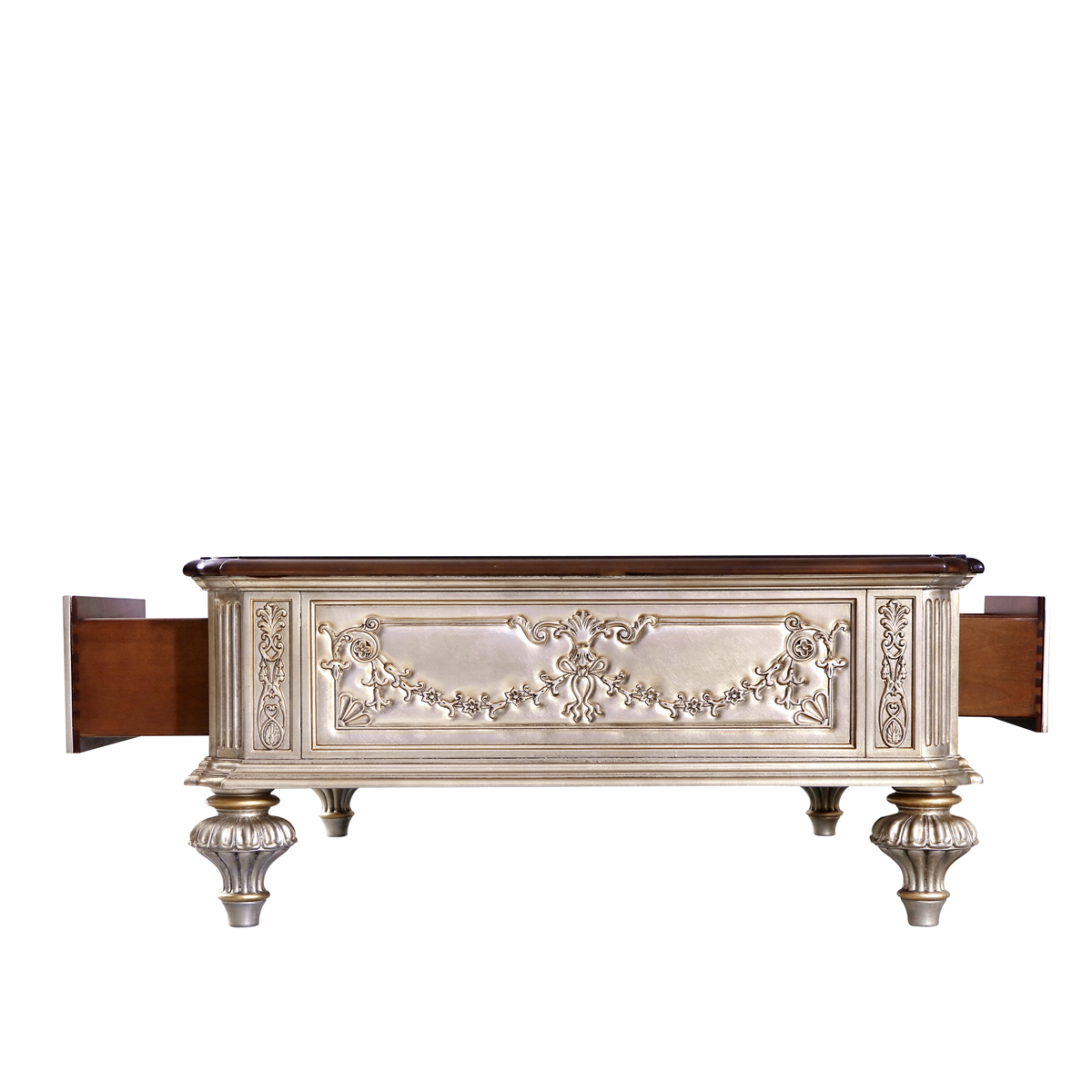 * 手工雕刻的工藝細節,結實的連接技術; * 四個為儲物抽斗,而在其底部采用經典硬木實木滑軌設計; * 底部裝有可調整腳釘;