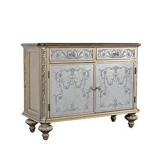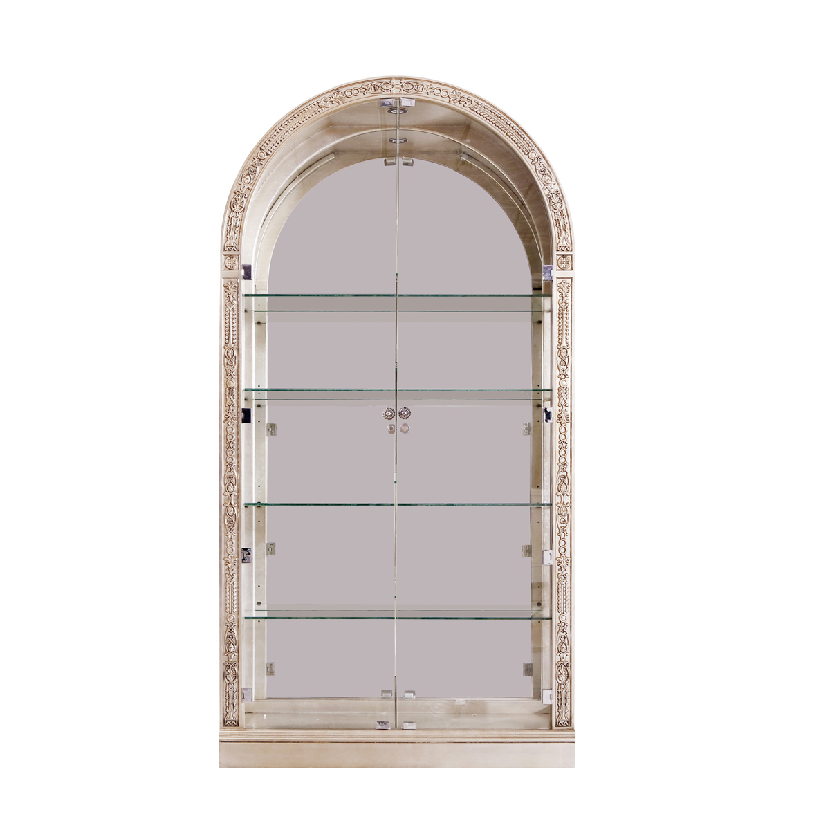 * 手工雕刻的工藝細節結實的連接技術18道以上的多步驟油漆工藝; * 門內有四塊玻璃層板,背板處裝有背鏡,使內部的光線更通亮;