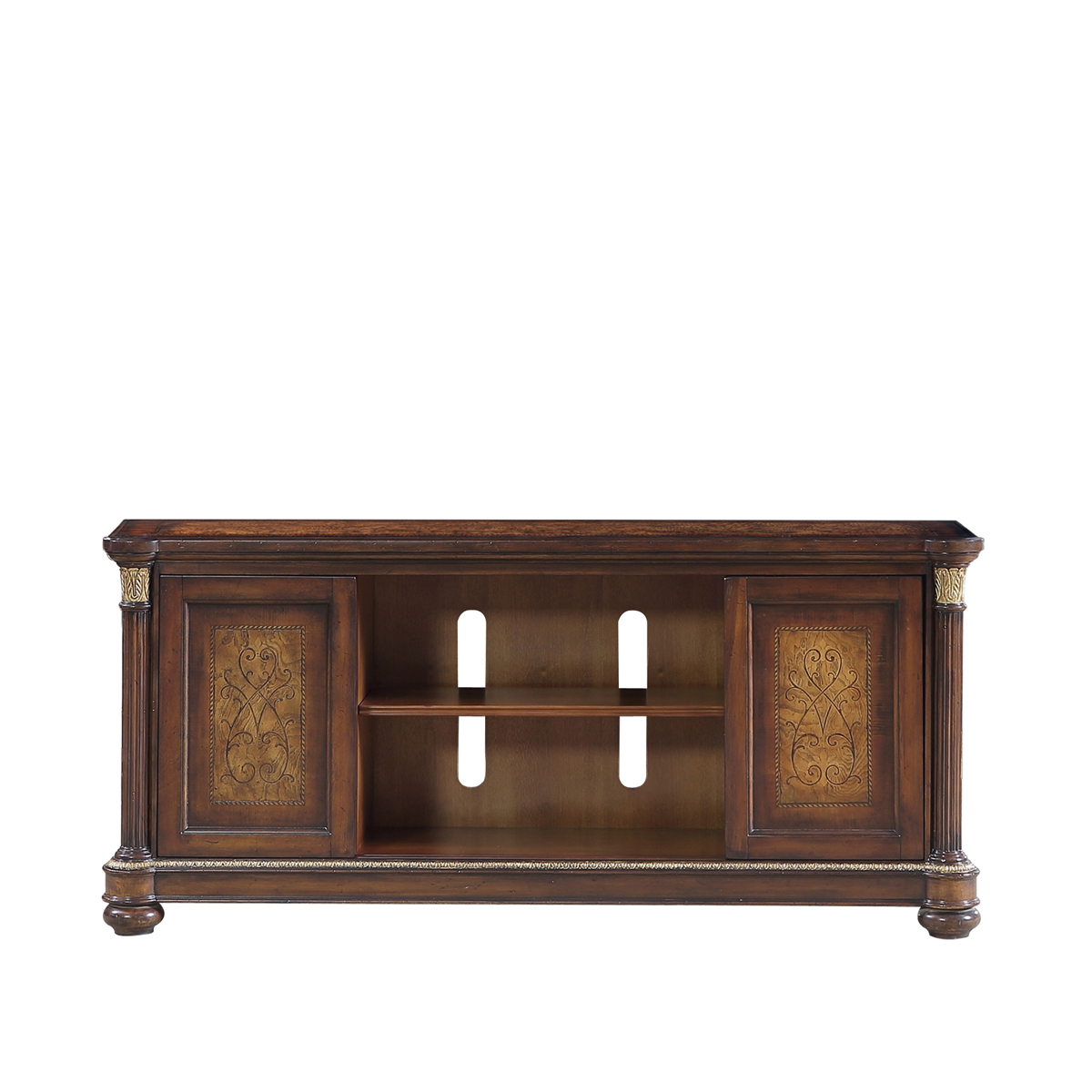 * 以意大利的宮廷家具和羅馬的古建筑為元素,使用華麗莊嚴的 Corinthian Order(科林斯式)羅馬雕刻柱與描金工藝結合;配以阿坎賽斯葉狀雕刻與精致優美的手工拼花,精彩展現了意式家具奢華絢麗而又極富藝術人文氣息的迷人魅力。