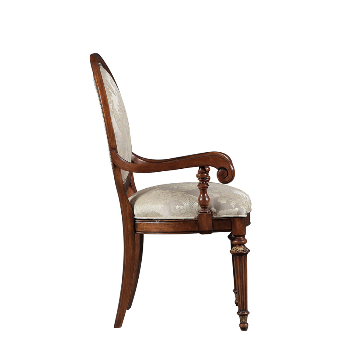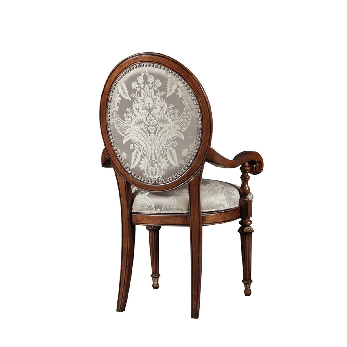 從17世紀意大利帝國EMPIRE風格中汲取靈感,以意大利的宮廷家具和羅馬的古建筑為元素,使用錐形的腿腳設計、精致的手工雕刻細節和描金工藝結合,顯 示王權的穩固地位;彎曲有度的扶手配以富貴花開的灰褐色印花布藝,精彩展現了意式家具奢華絢麗而又極富藝術人文氣息的迷人魅力。
