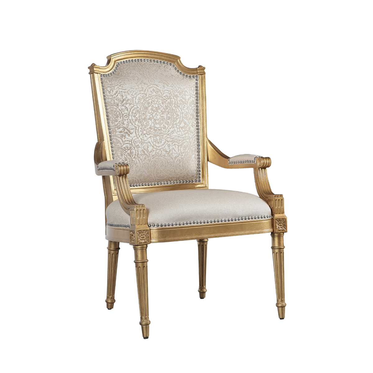 赫普爾懷特風(fēng)格的盾形背搭配車織雕刻腿比例優(yōu)美,造型優(yōu)雅,兼有古典式的華麗和路易十六式的纖巧。描金工藝與淡黃色軟裝布藝的交織,是自然的色彩密碼與權(quán)利至上的象征。
