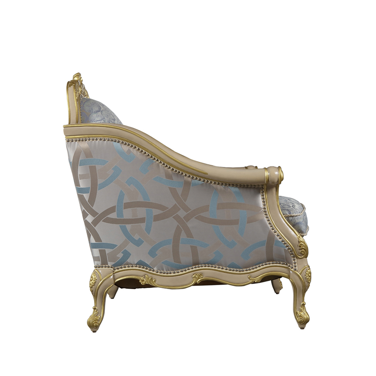 * 線條的沙發造型猶如連綿不斷的花海,實木的藤花雕刻搭配繁花點綴的沙發布藝,盡情演繹普羅旺斯的萬種風情,行如流水的銀色釘扣,給自由的生活空間裝飾上浪漫的色彩。