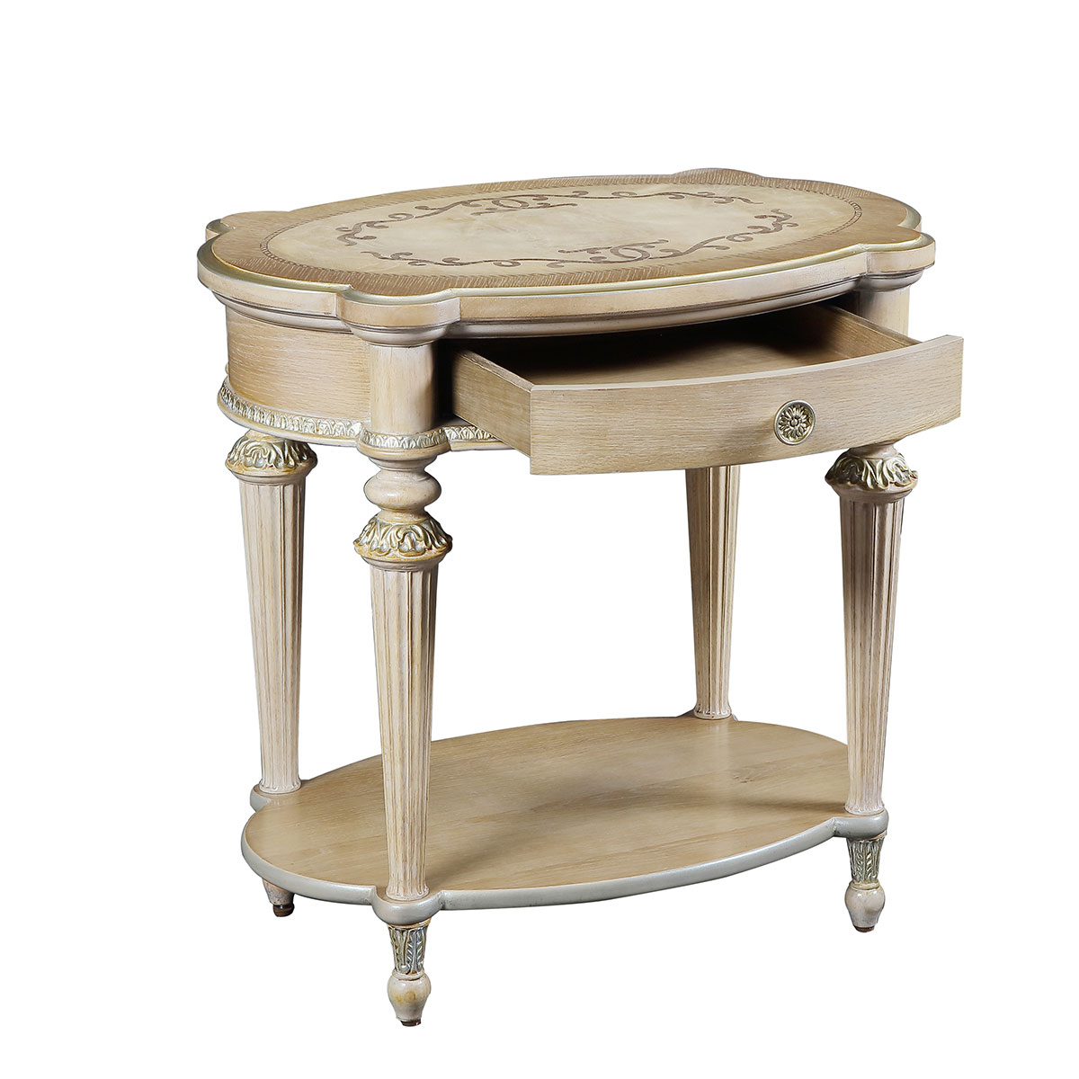 意大利古典家具,講究的是細節的完美極致和整體的高雅奢華, 薄木拼花工藝,設計師將刨制的珍稀木片通過一定規則和樣式拼貼成賞心悅目的圖案,貼銀刻金和鑲嵌的裝飾在這個翡冷翠橢圓燈臺上也能一一呈現,不僅美觀奢華,更整體增加了家具的歷史性和藝術性。