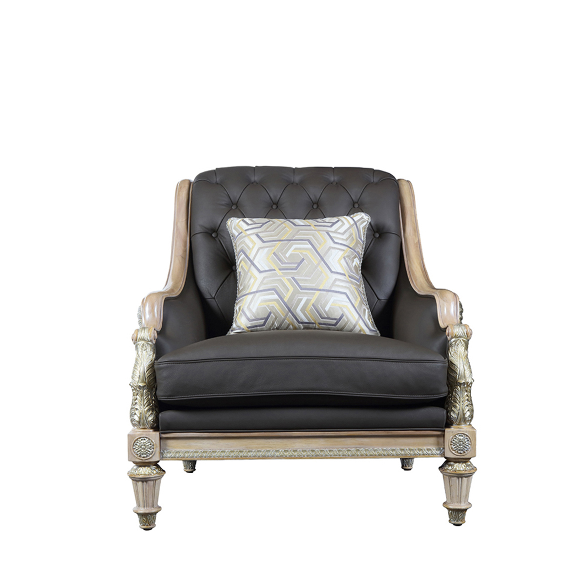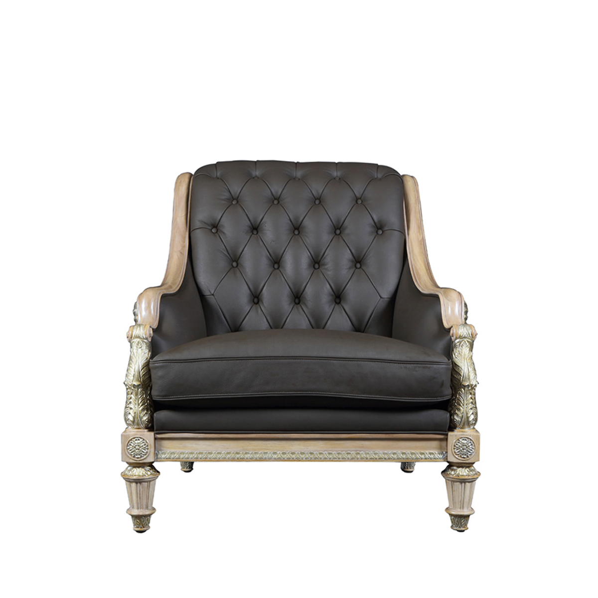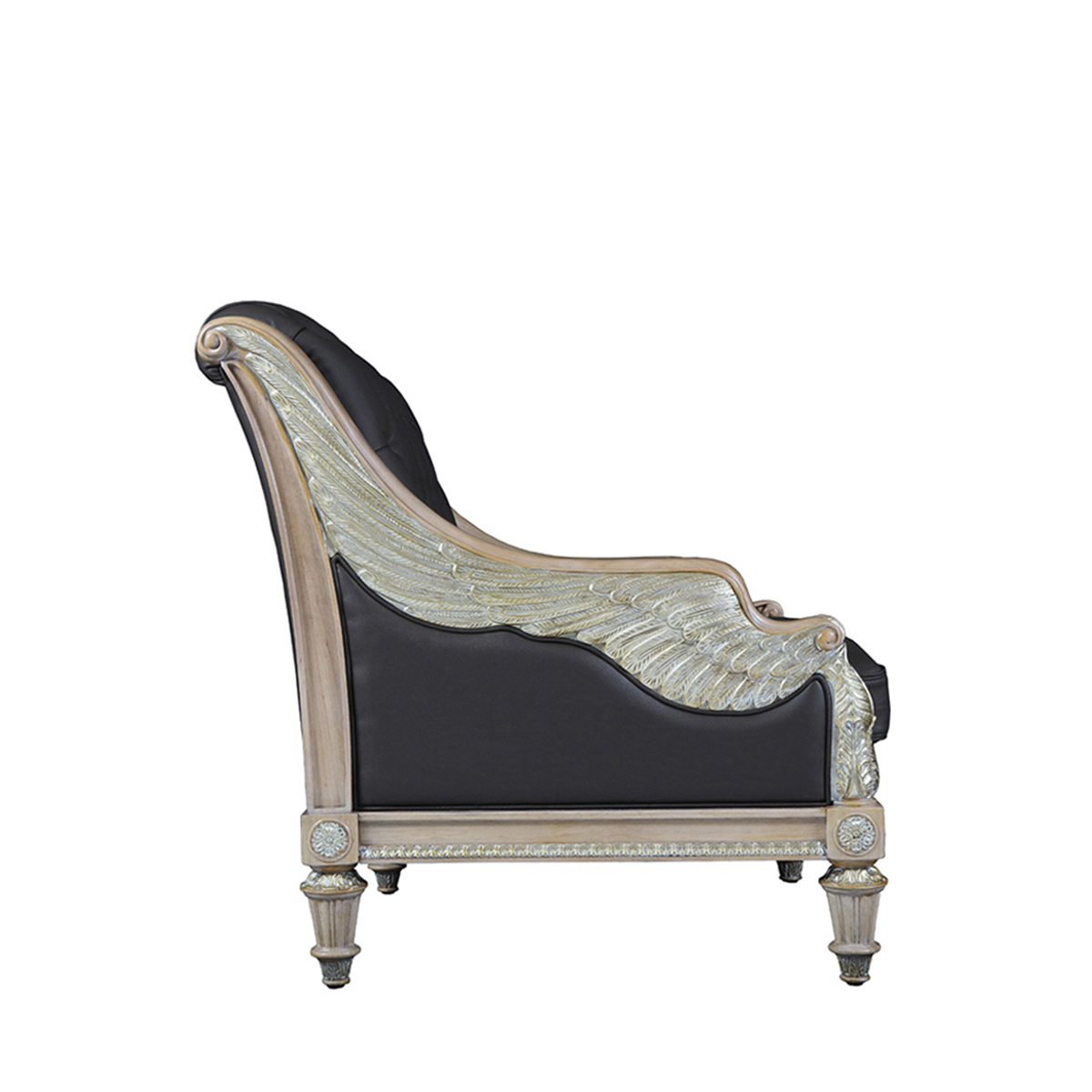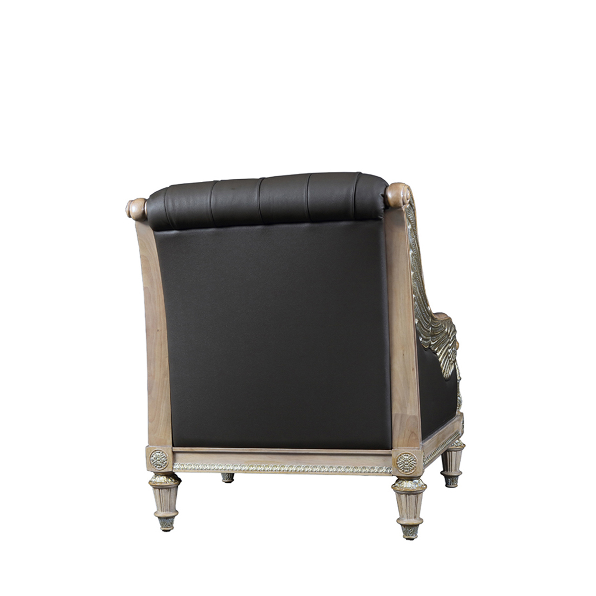 魅影灰邂逅灰褐色,皮質珍奢而不失大氣之姿;設計雕刻出勝利女神-Samothrace翅膀扶手,羽翼豐滿的羽毛雕刻極為精巧經典,援引古典常用的色彩,以簡飾繁;錯落有序的條紋回路蘊藏著達•芬奇的繪畫創作靈感,拉斐爾的建筑設計妙思以及米開朗基羅的雕塑精粹。