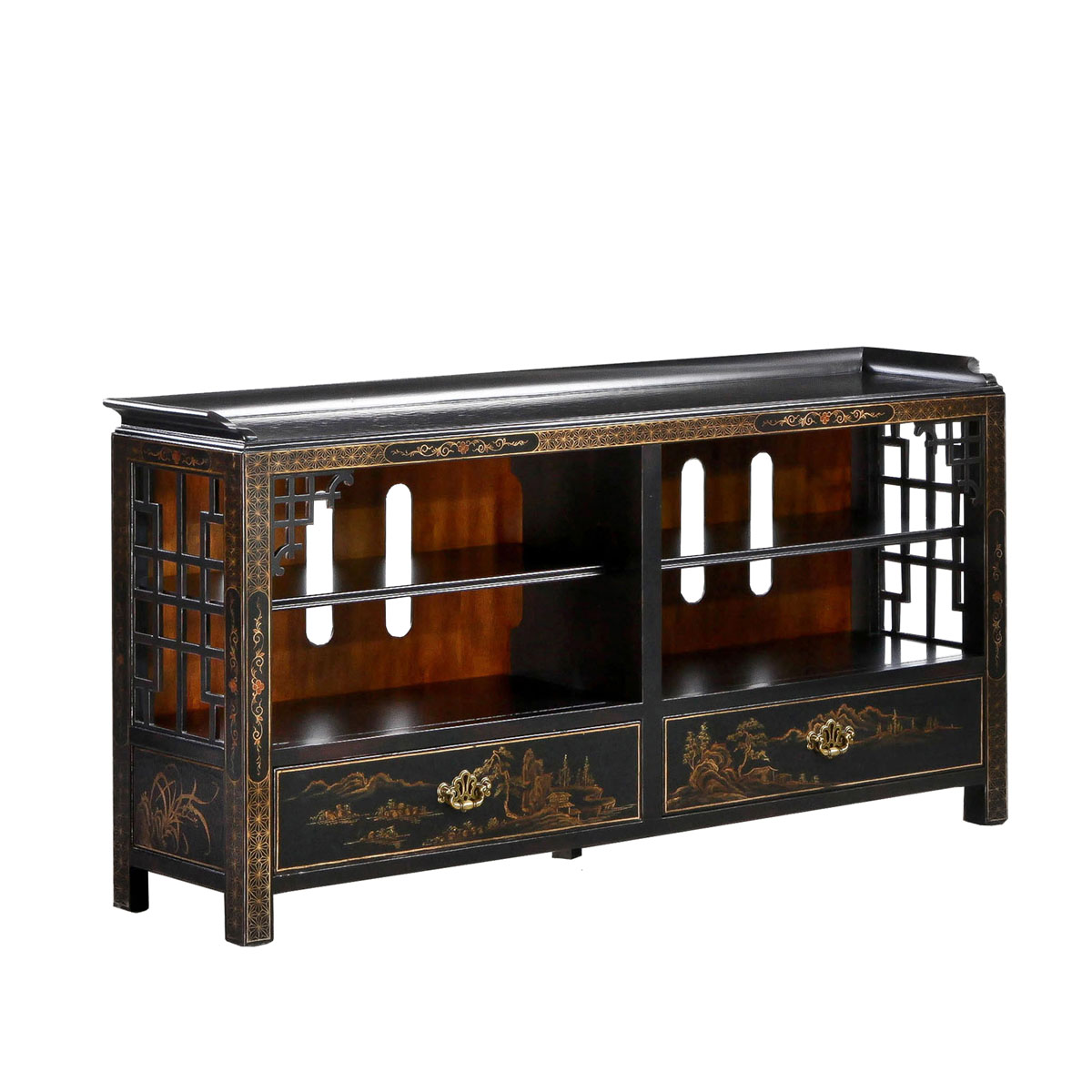 * 以18世紀英吉利——“日不落帝國”為設計主題,把東西方的多種藝術元素結合在一起。如以東方山水畫為靈感的手繪圖案,在黑底金漆的映襯下更顯清幽迷人,配上中式建筑的窗格花設計,完美詮釋了18世紀英國皇室崇尚東方元素的風尚潮流。