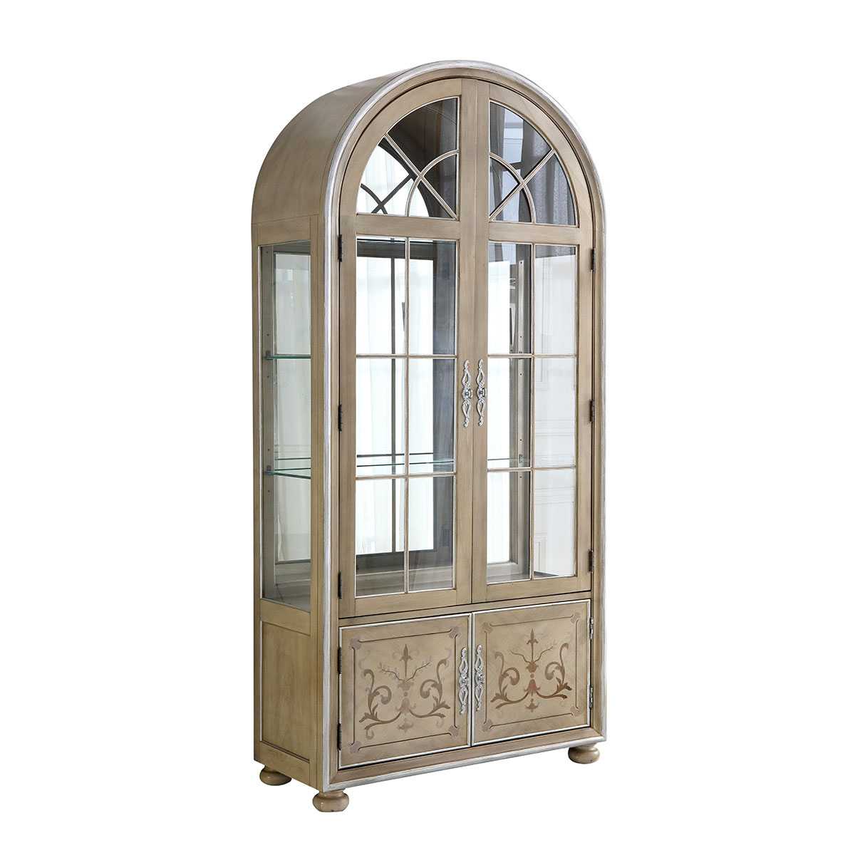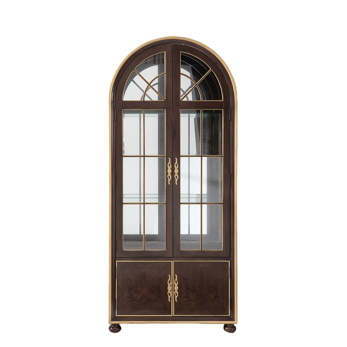 * 門內(nèi)有三塊玻璃層板,背板處裝有背鏡,使柜身內(nèi)部的光線更通亮; * 下門內(nèi)有一塊可調(diào)木制層板;