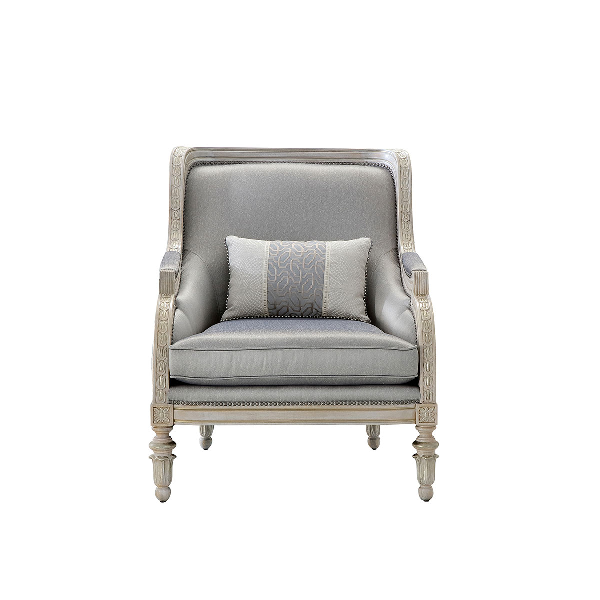 復古而有時尚感的香檳金涂裝,喚醒輕奢時尚;井然有序的雕刻,栩栩如生的花紋裝飾,使它不論從任何角度欣賞,都愈加美不勝收。含苞待放的鈴蘭花雕刻椅腳增添知性的魅力,綻放氣質光彩。