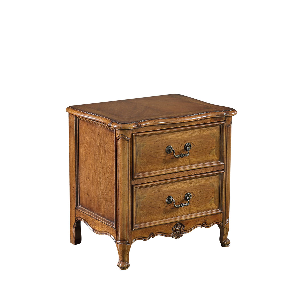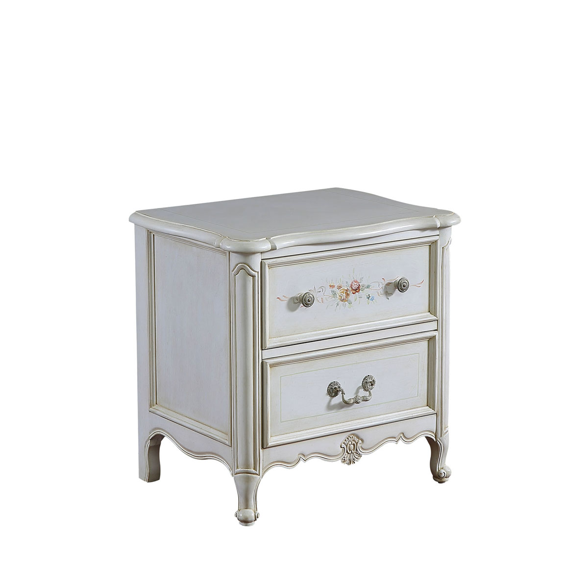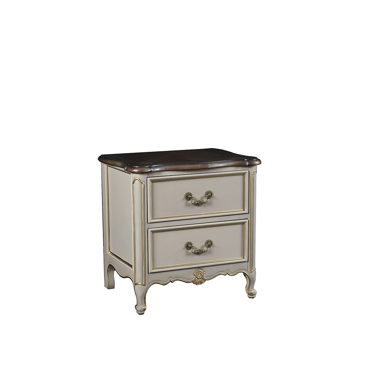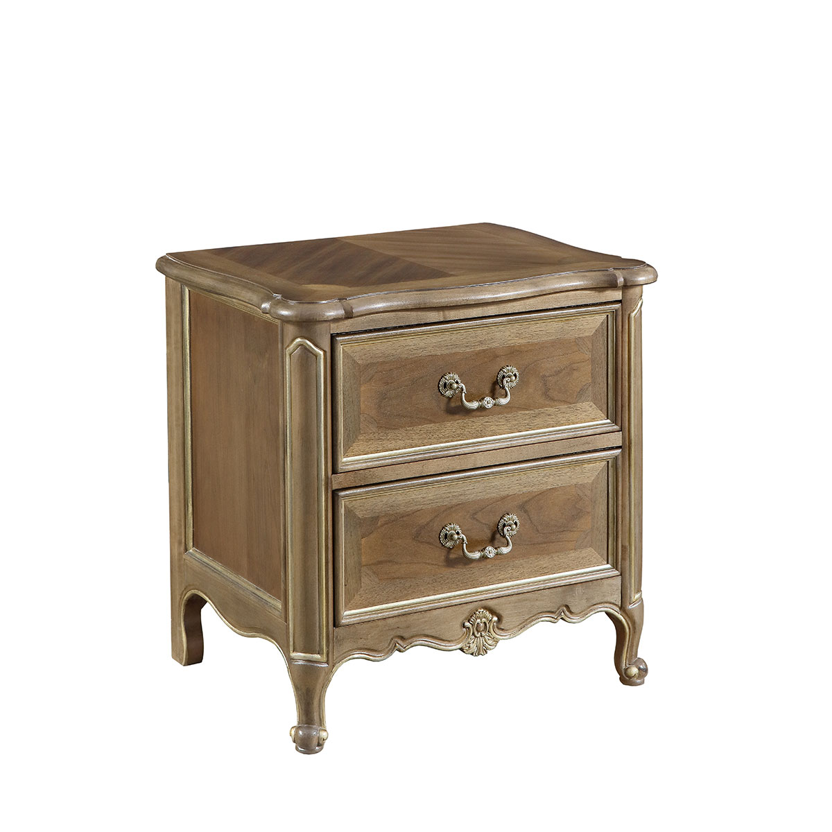 "* 手工拼花藤蔓效果,用多種上等木皮拼制而成 * 二個儲物斗,底部采用經(jīng)典的硬木實木滑軌; * 腳腳底部裝有可調(diào)腳釘;"