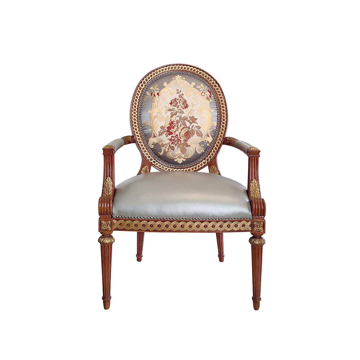 * 精細的手工雕刻配上仿金箔工藝結合十八道油漆工藝 * 坐墊和靠背包有豐厚的填充物; * 可拆裝的軟包座墊, * 提供多種面料可供選擇