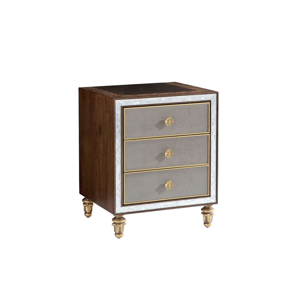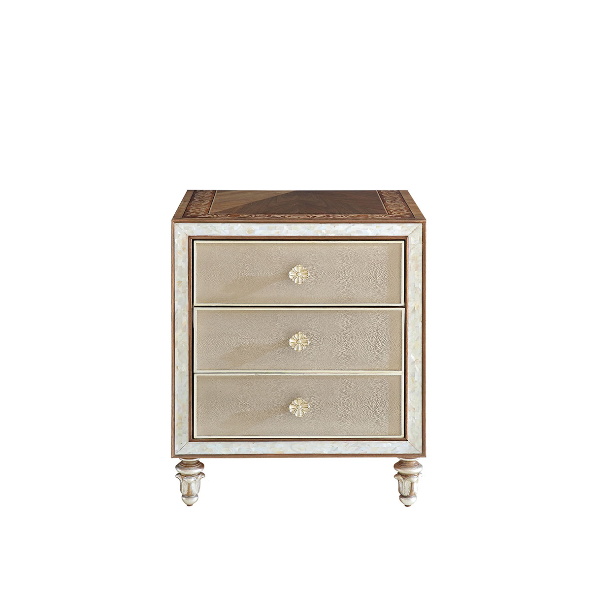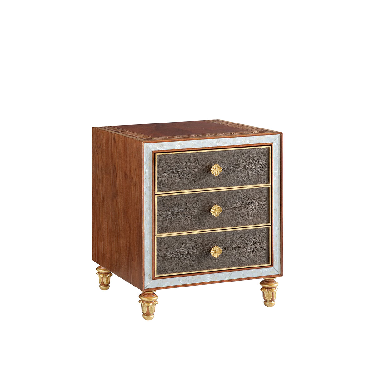 橡膠木+環保人造板+貝殼+黑胡桃+艷陽花+櫻桃木等木皮貼面+皮革