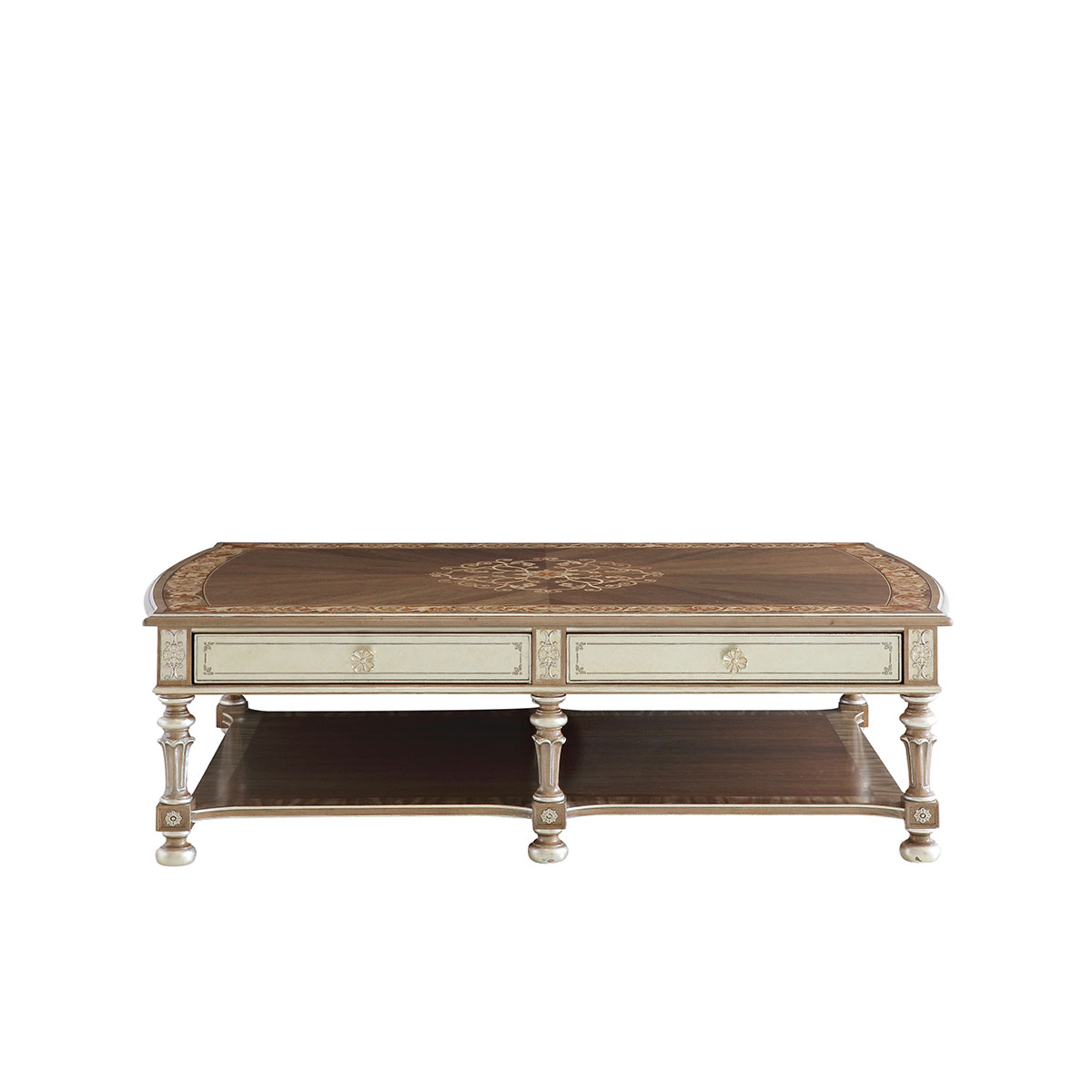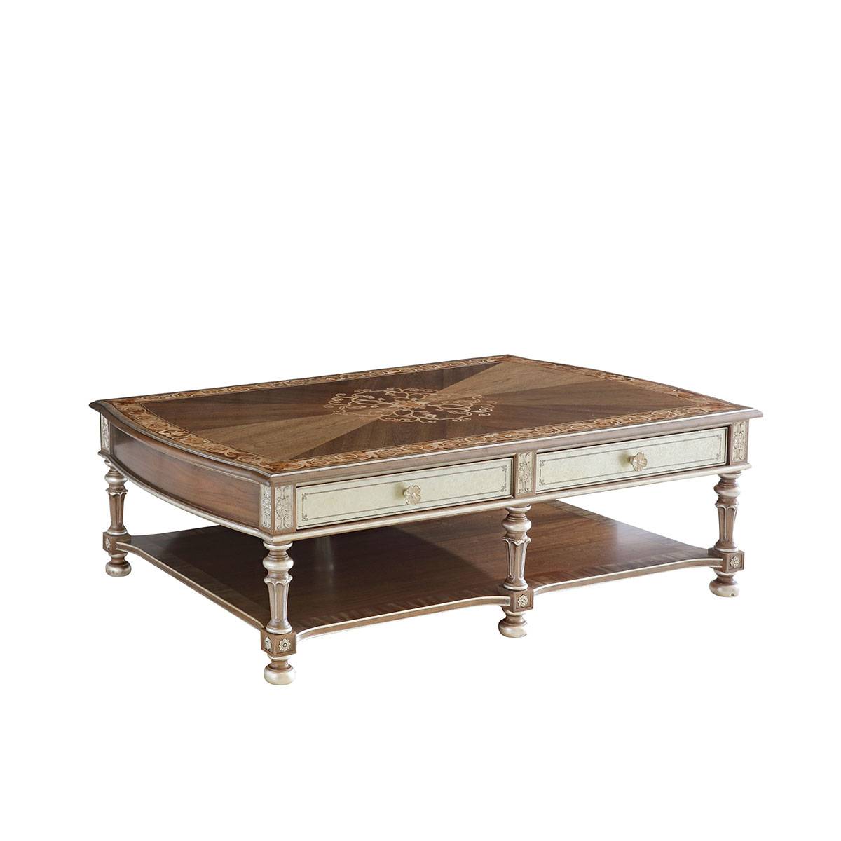 橡膠木+環保人造板+黑胡桃+艷陽花+櫻桃木等木皮貼面+彩繪玻璃