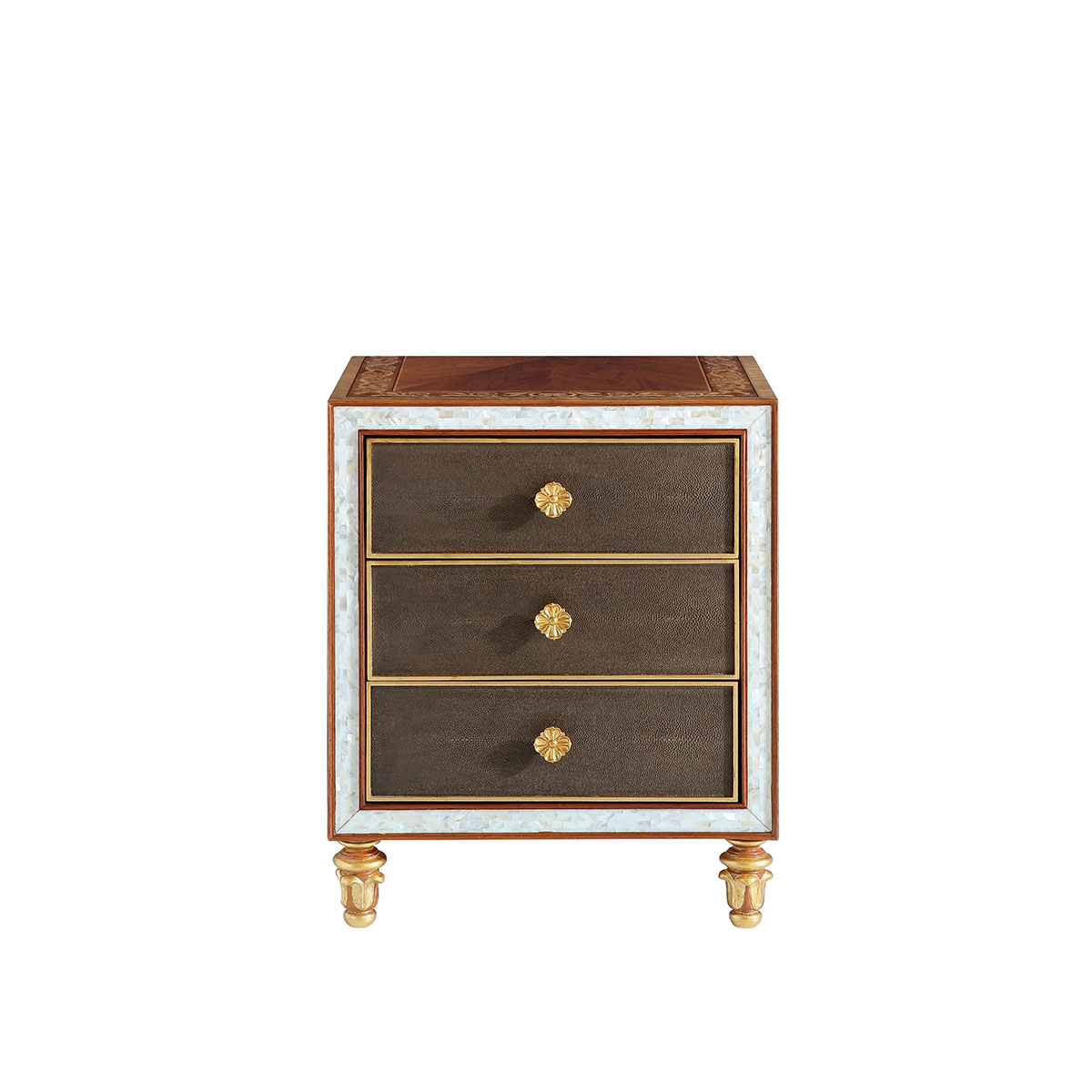 橡膠木+環(huán)保人造板+貝殼+黑胡桃+艷陽花+櫻桃木等木皮貼面+皮革