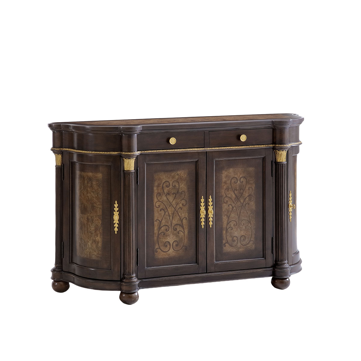 橡膠木+環保人造板+白栓樹瘤、橡膠木、黑胡桃木、楓木、裝飾線條等木皮貼面