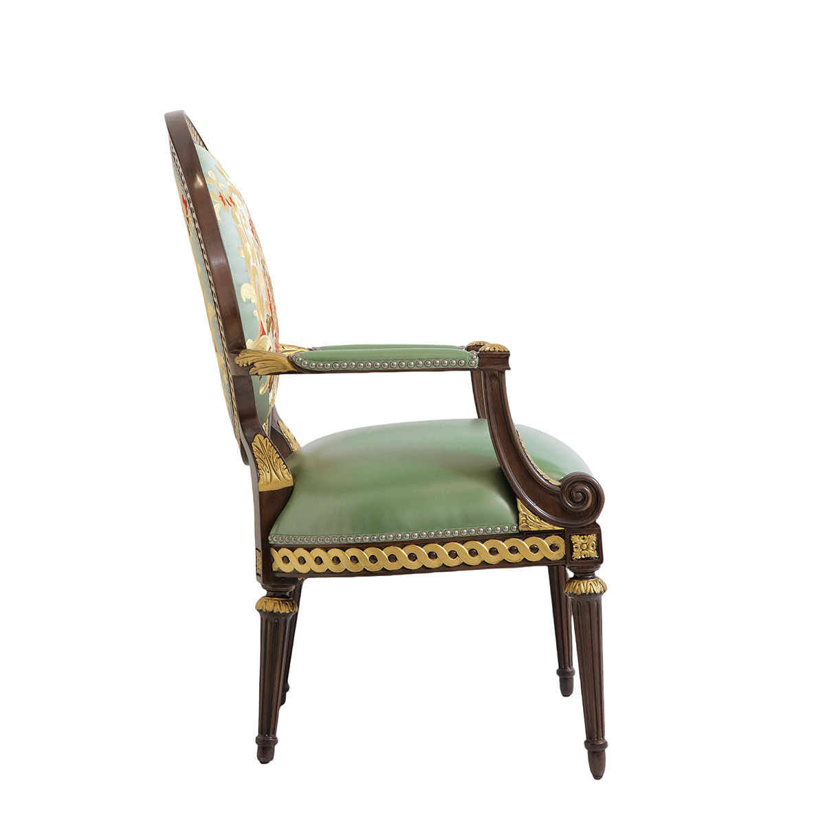 * 精細的手工雕刻配上仿金箔工藝結合十八道油漆工藝 * 坐墊和靠背包有豐厚的填充物; * 可拆裝的軟包座墊, * 提供多種面料可供選擇