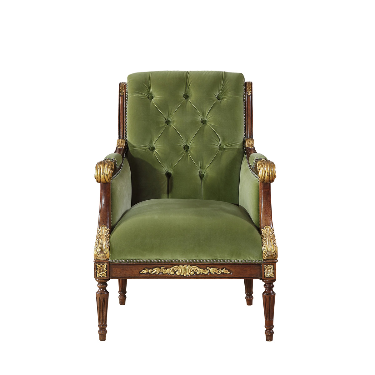 卷葉雕刻的扶手設計、舒適的椅背角度、細致的雕刻和貼金箔工藝。這款休閑椅是QueenVictoria(維多利亞女皇)時期的設計,我們還可以在她晚年的照片中找到它的蹤影。并配上觸感舒適的布藝和包有豐厚的填充物坐墊和靠背。