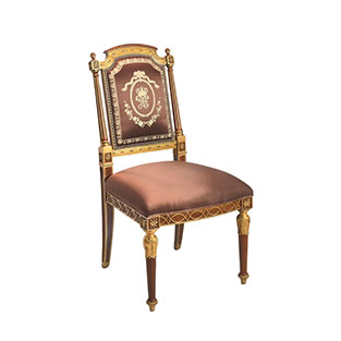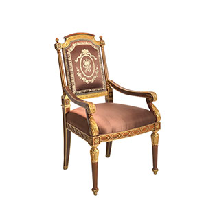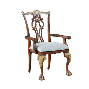 * 為表現(xiàn)英國皇室的華麗和莊嚴(yán),以英國溫莎堡為設(shè)計元素。使用雕刻描金葉飾花紋,表現(xiàn)出英國王室的典雅氣質(zhì),配上代表勝利的旋渦狀支撐柱、精致的手工雕刻細(xì)節(jié)和貼金箔工藝,完美演繹了英式宮廷家具的奢華尊貴,可謂是極具典藏價值的傳世之作。