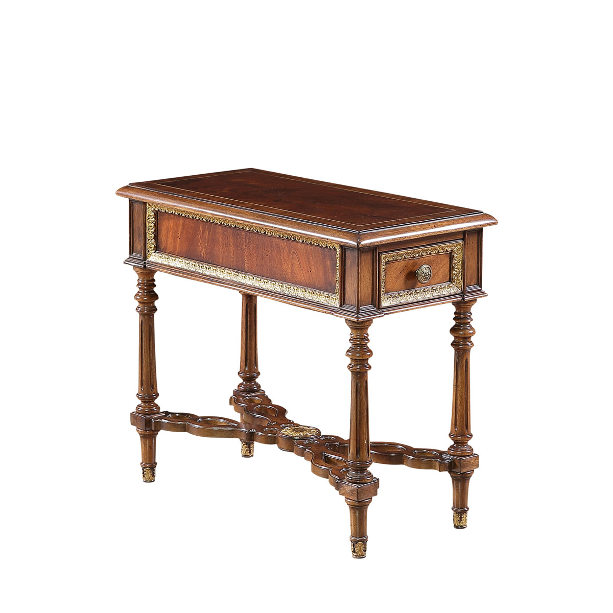 * 為表現英國皇室的華麗和莊嚴,使用哥德式建筑的“十”字形鏤空底座設計,配上精致的手工雕刻細節和貼金箔工藝,是豪華系列溫莎堡英式裝飾桌的特色。