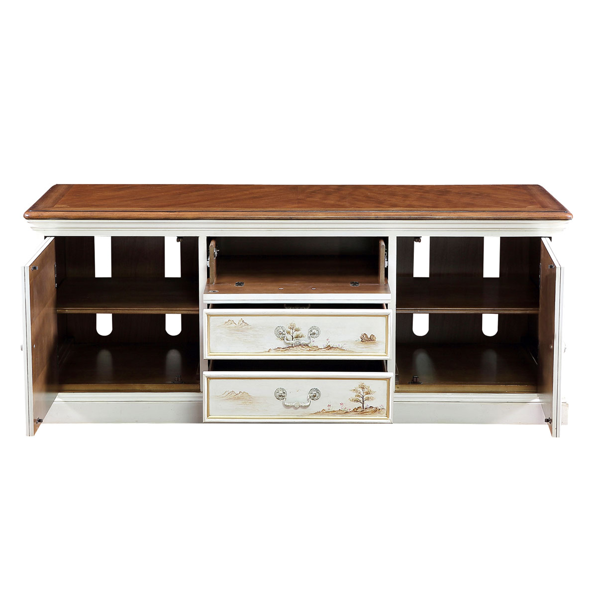 * 羅馬建筑柱的圓柱設計,沉淀了古老歷史里煜煜生輝的璀璨文明;猶如晨陽的實木簿片拼貼,盡顯工藝精湛細致;實用性層板設計,將藝術與生活完美結合.