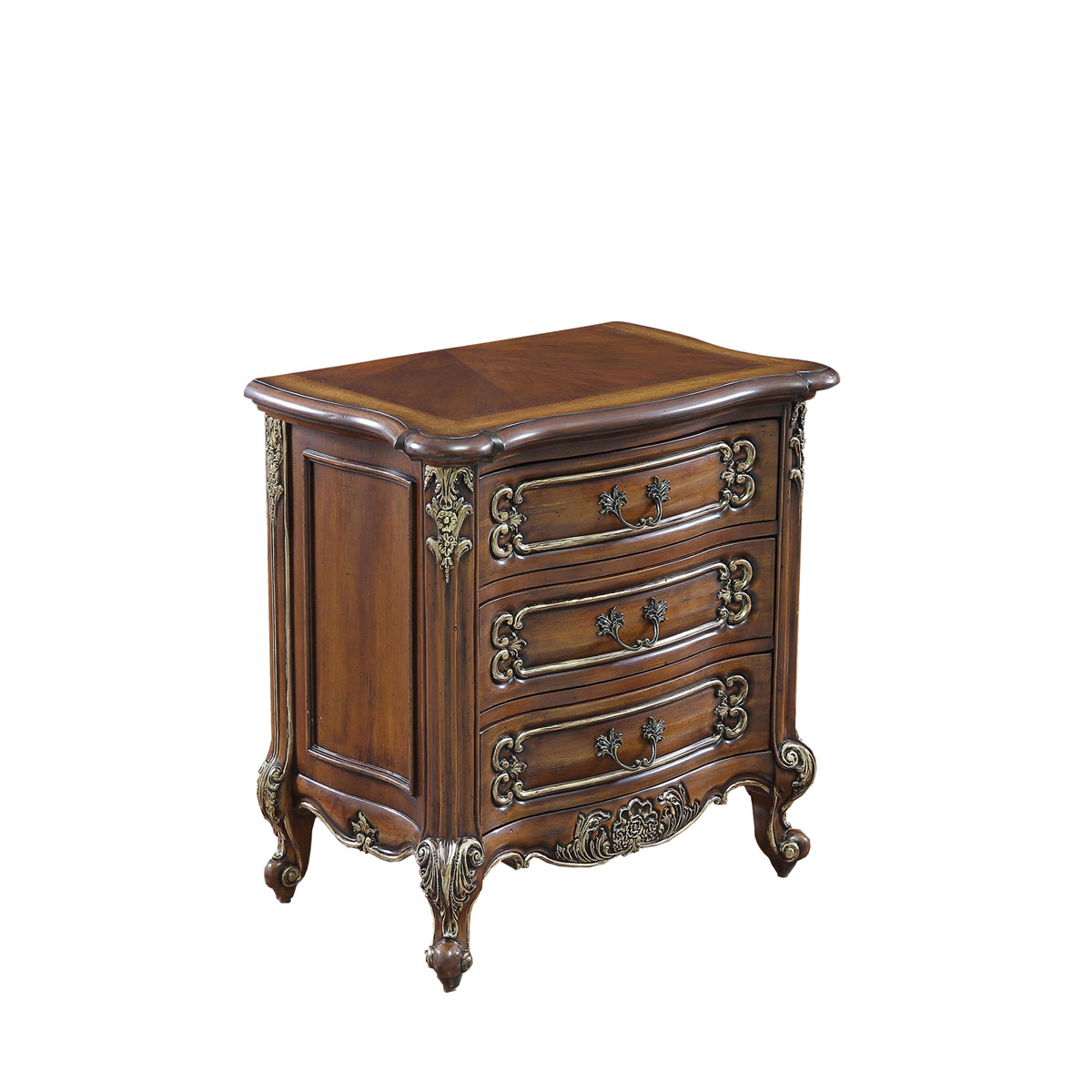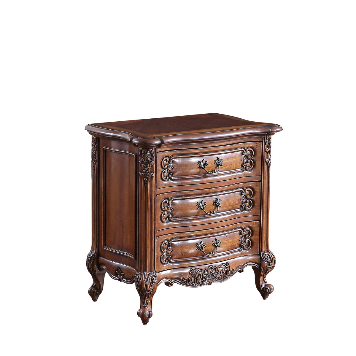* 手工雕刻的花圃、藤蔓、阿坎瑟斯卷葉圖案和彎腳設計; * 結實的連接技術; * 三個儲物抽斗,并在其底部采用經典硬木實木滑軌設計; * 腳底部裝有可調腳釘;