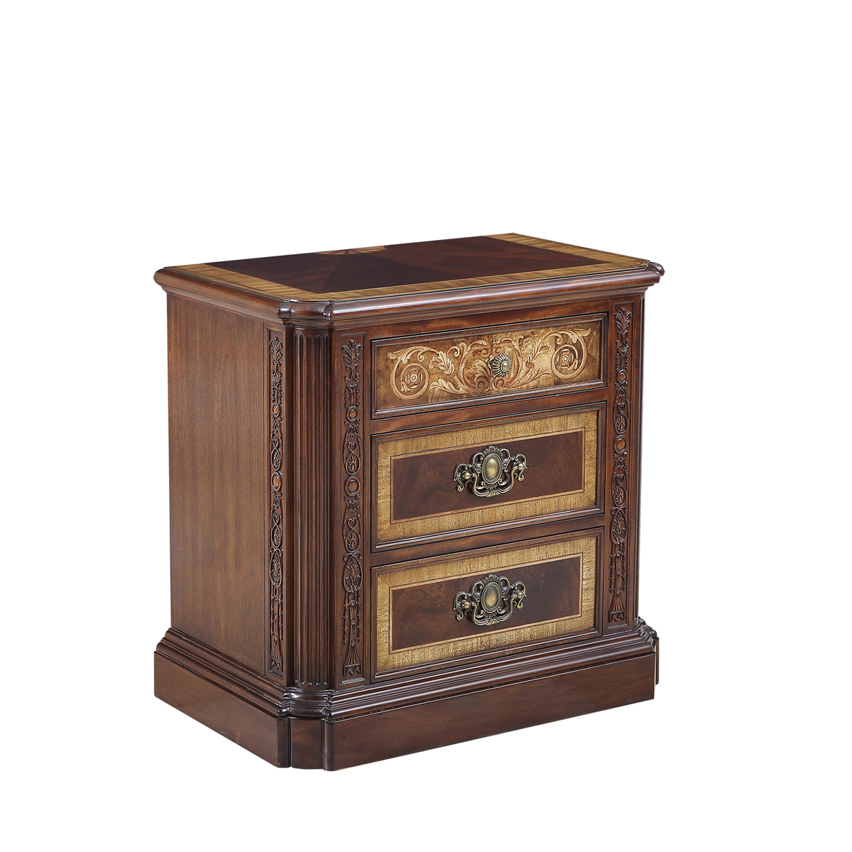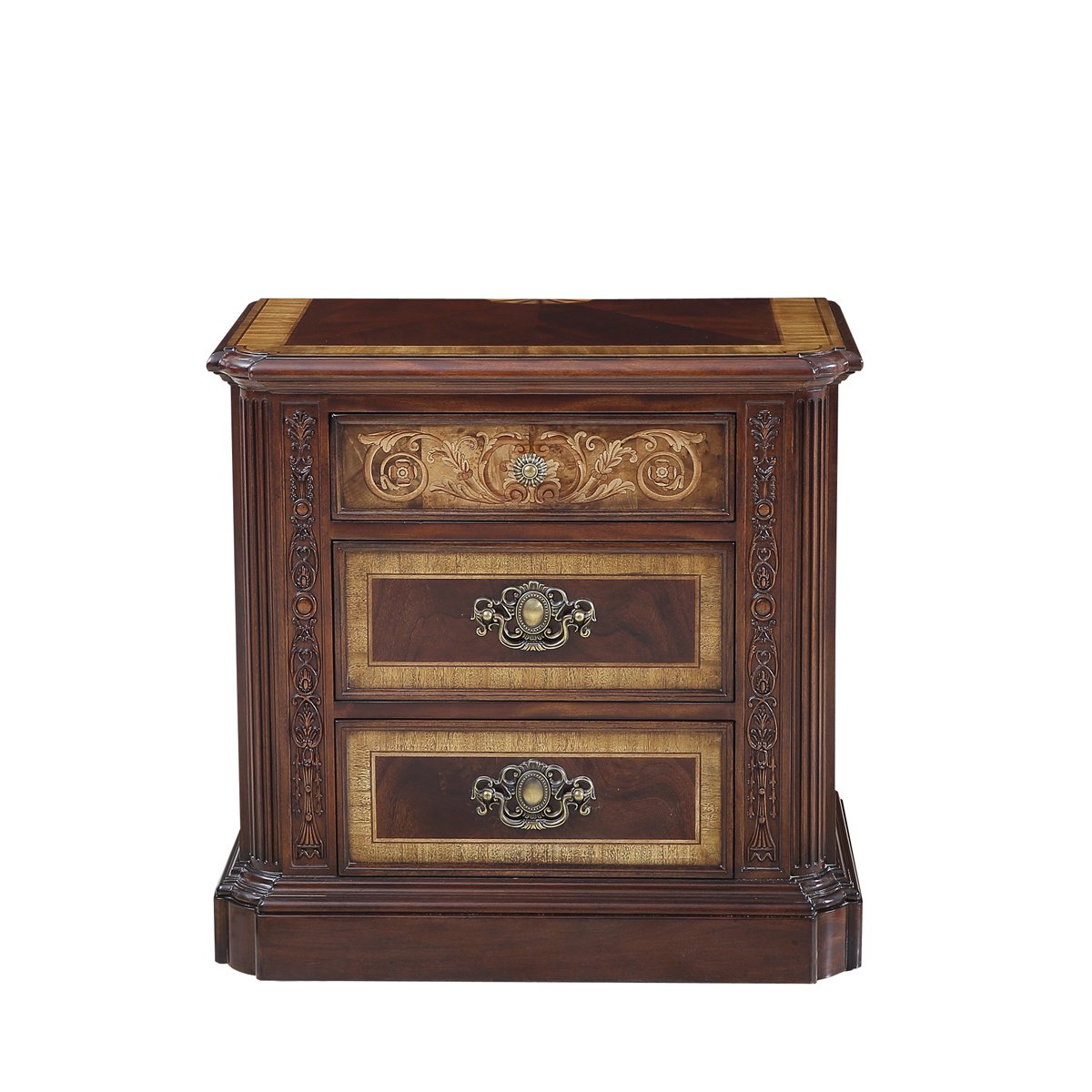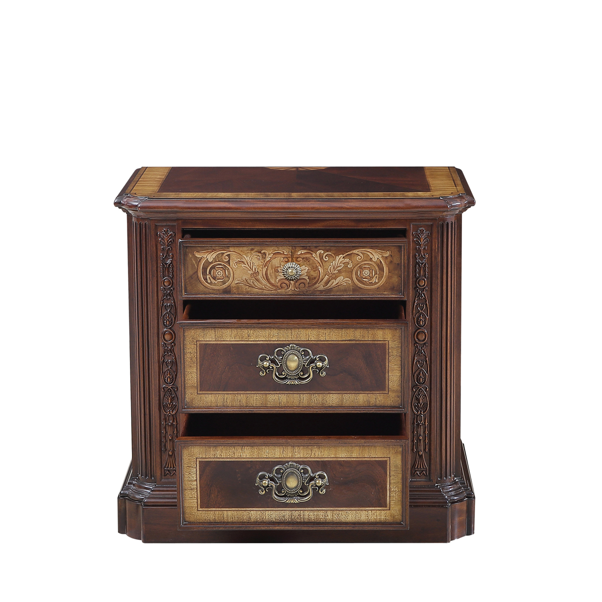 * 以現位于美國白宮中象征友誼和權力的堅毅桌(英語:Resolute desk)為設計意念, 以實木拼貼和雕刻工藝,將具有紀念意義的歷史時刻融入其中,實用性的功能設計更是把藝術和生活完美結合, 是宮廷系列華盛頓美式床頭柜的特色。