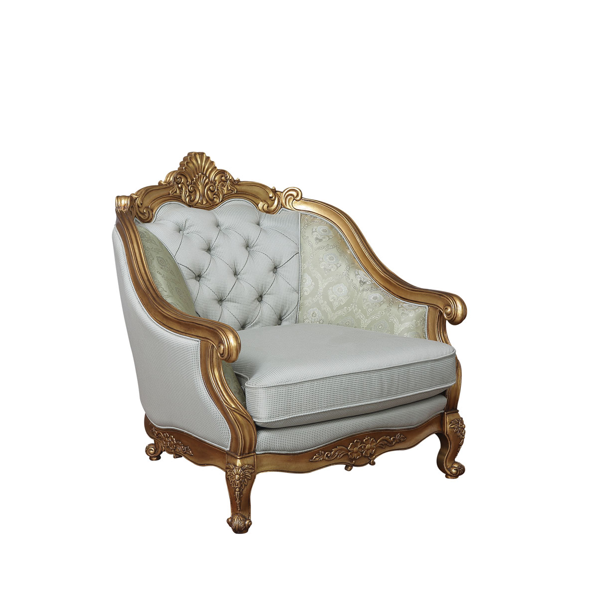 * 為表現(xiàn)法國路易時期的莊嚴(yán)與浪漫,以凡爾賽宮為設(shè)計元素。猶如凡爾賽宮建筑頂?shù)纳嘲l(fā)造型,搭配實木雕刻, 雙重觸感的軟包配搭和包有豐厚的填充物, 完美演繹了法式宮廷家具的奢華尊貴