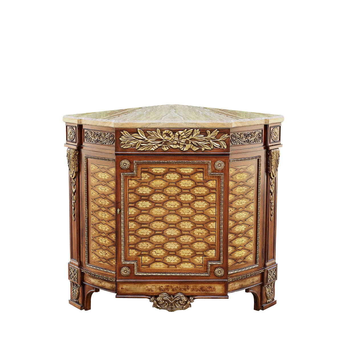 * 以18世紀著名工匠 - Joseph Baumhauer 制造的新古典風格古董柜為靈感,四平八穩的方形設計配以細膩的雕刻與實木簿片鑲嵌,呈現出法國宮廷的浪漫。
