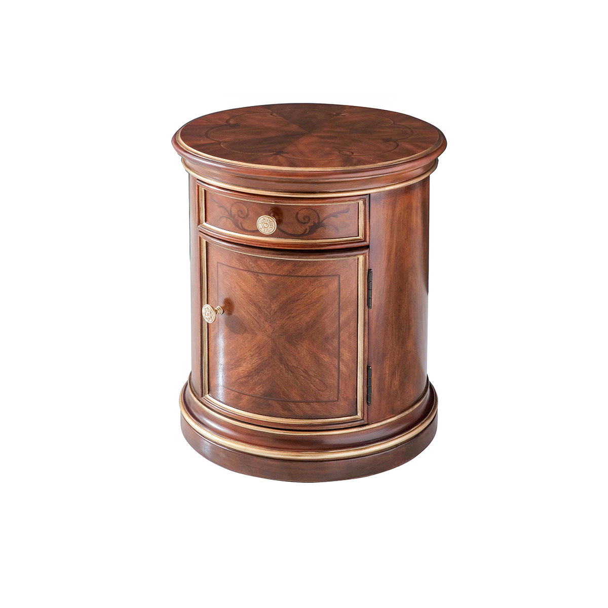 * 一個儲物抽斗,底部采用經典的硬木實木滑軌。 * 門內一塊活動層板,儲存空間可自由調節 * 多種木皮拼接工藝。